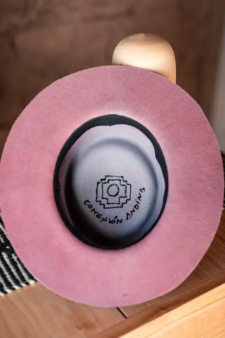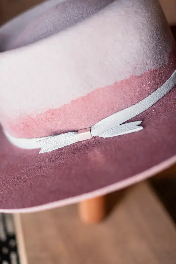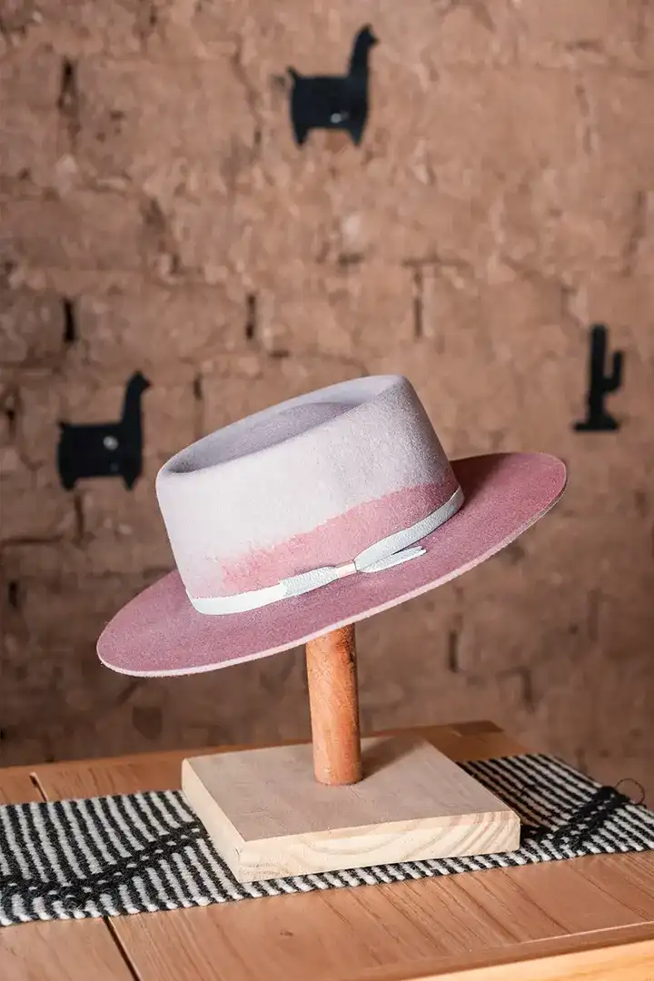 Sombrero de fieltro de lana de oveja. Cinta de cuero con doble pin. Badana interna textil.
